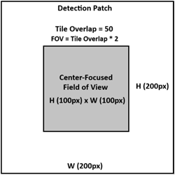 1. In the Tile Overlap field, enter the number of pixels that will define a margin on all sides of each detection patch, forming a center-focused field of view (FOV). For example: