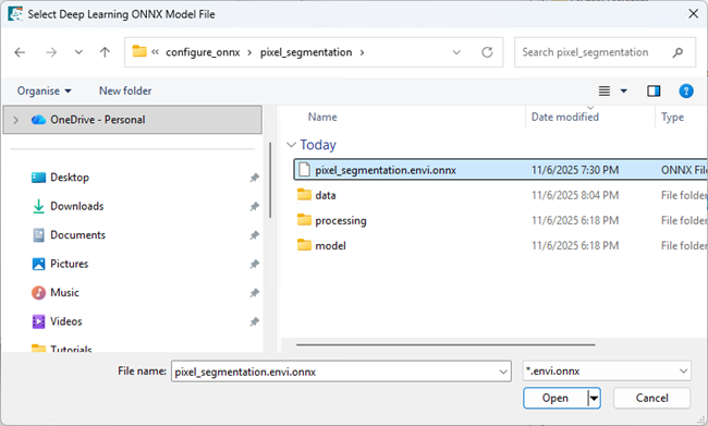 - Integrate the Model in ENVI Deep Learning: Use ENVI Deep Learning tools to configure the ONNX model, link the pre/postprocessors, and configure runtime parameters for classification workflows.