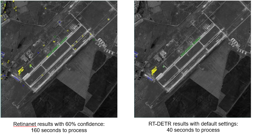 - Object Detection: RT-DETR processing time is 3-4x faster than Retinanet (this depends on your architecture, but it is overall much faster).